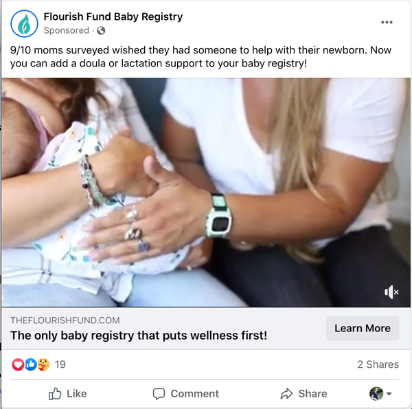 The Flourish Fund Baby Registry • 5th January 2021 Facebook Ad for Flourish Fund Baby Registry I wrote the copy for this Facebook ad that is part of series.